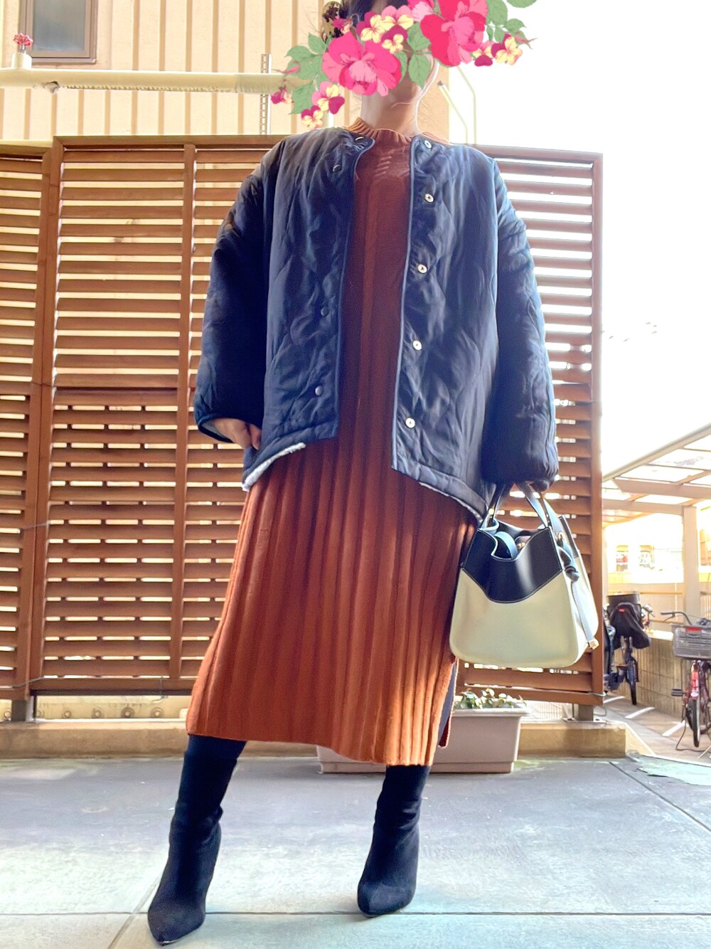 あっき✲のワンピース「ローゲージケーブル編みデザインニットワンピース」を使ったコーディネート