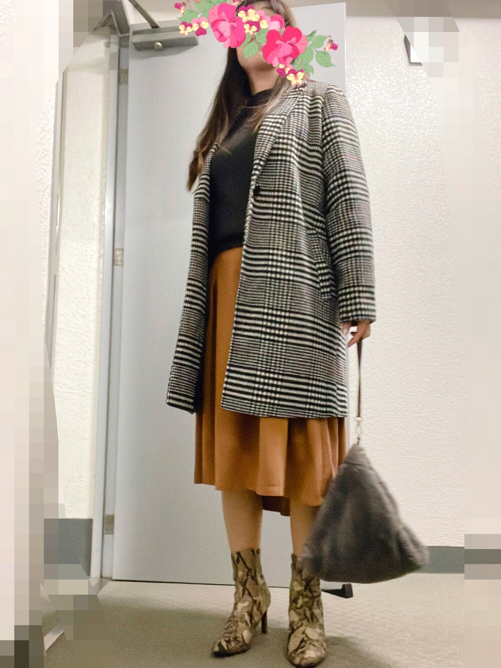 あっき✲のチェスターコート「グレンチェックチェスターコート」を使ったコーディネート