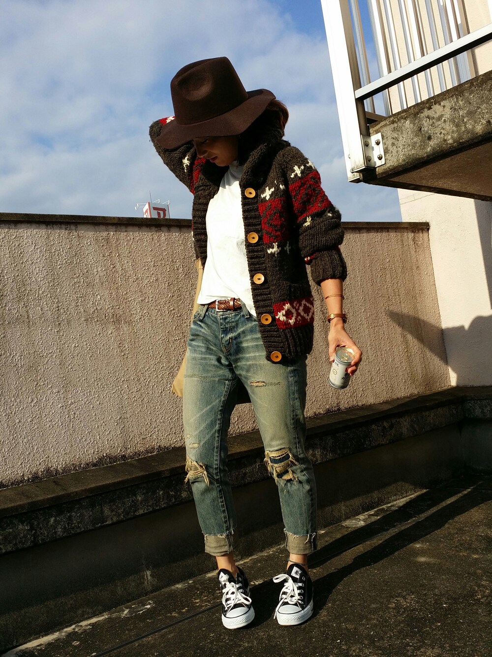 カウチンニットはniko and...で数年前に購入☺ デニムはungridで数年前に購入しました☺