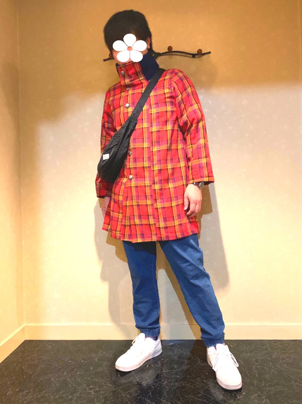 あちきとメイのその他アウター「【チャイハネ】チェック柄パッチワークMEN'Sコート」を使ったコーディネート