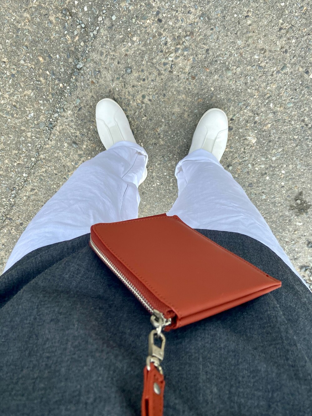 形が良い服だけを集めたコーデ 黒を使わず全体的に輪郭がぼやけるため ネックウォレットで視線誘導しごまかしました。 白白で脚長効果 リネン素材で地味にならない。