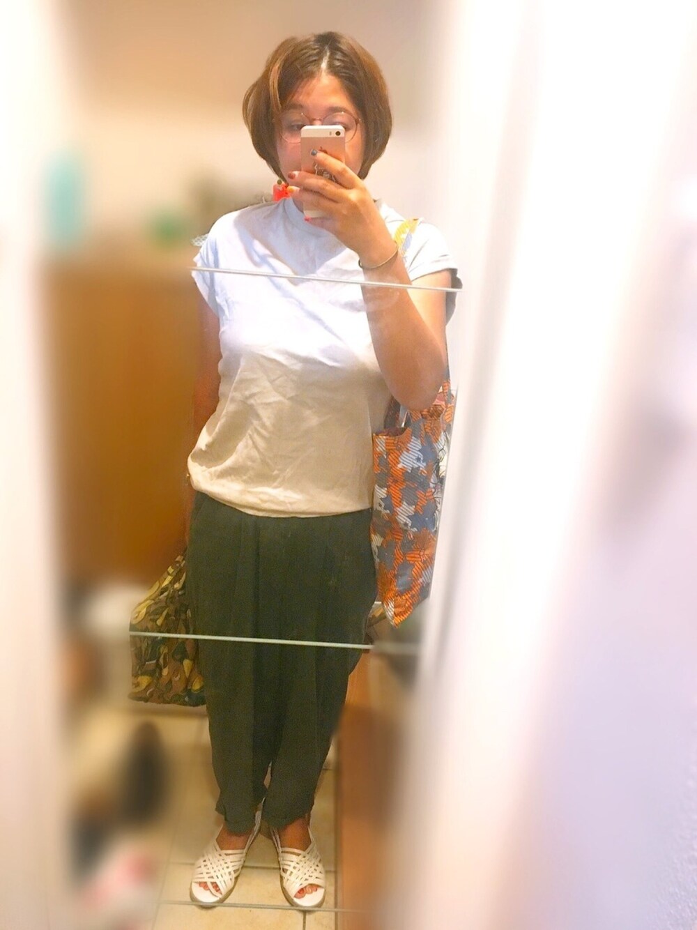 淡いグレーとグリーン 見たことあるなと思ったら、Tシャツ色違いのコーデやってたー😅 この無印のフレンチスリーブTシャツ、本当に着心地が良くて好き。スカートにもパンツにも合わせやすい💕 右手に持ってるのはAwesomestoreのエコバッグ。 コンビニ袋サイズって意外となくないですか?そして意外と必要じゃないですか!? アボカド柄で可愛くて便利なのです。