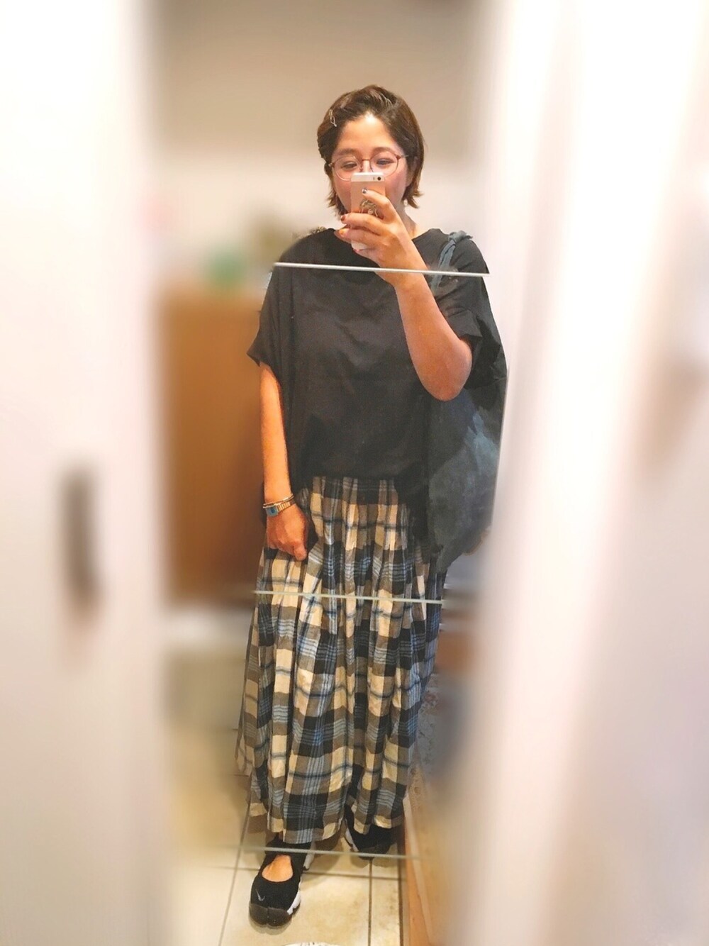 やっと買えた、レトロガールのチャリTシャツ❣️ 新型コロナウイルス対策を行うための募金に売上の一部が寄付されるとの事。 値下げされてる時に買っちゃったので、あまり貢献してないかもしれないですが😅 単純にTシャツの形が体型カバー効果抜群で大好きです😍 アウトレットで激安だったサマンサモスモスブルーの綺麗な水色チェックのスカートと合わせて💕 ブラック×ライトブルー。 珍しい色味かも。