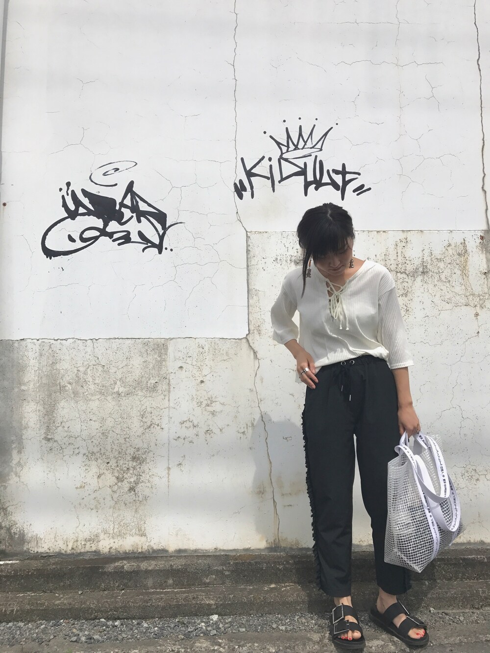 デザインの効いているアイテムを使ったモノトーンコーデ✨✨