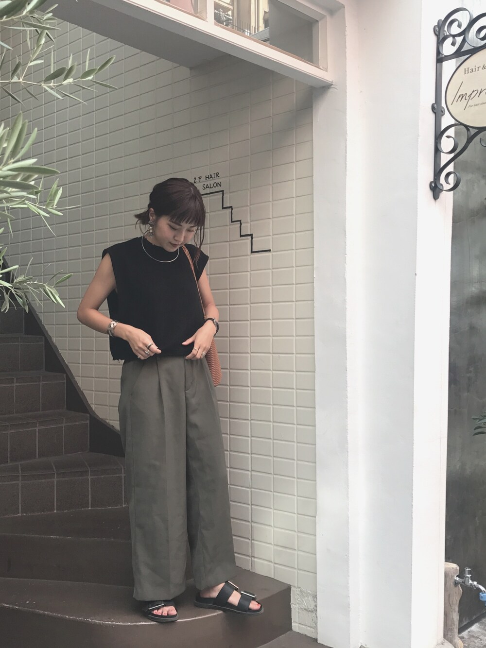ERINAのニット/セーター「ダメージノースリニット」を使ったコーディネート
