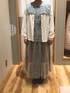 モノトーンの中にミントのブラウスが映えるコーディネートです!小物系はブラウンで統一感を出しています🧶🍂