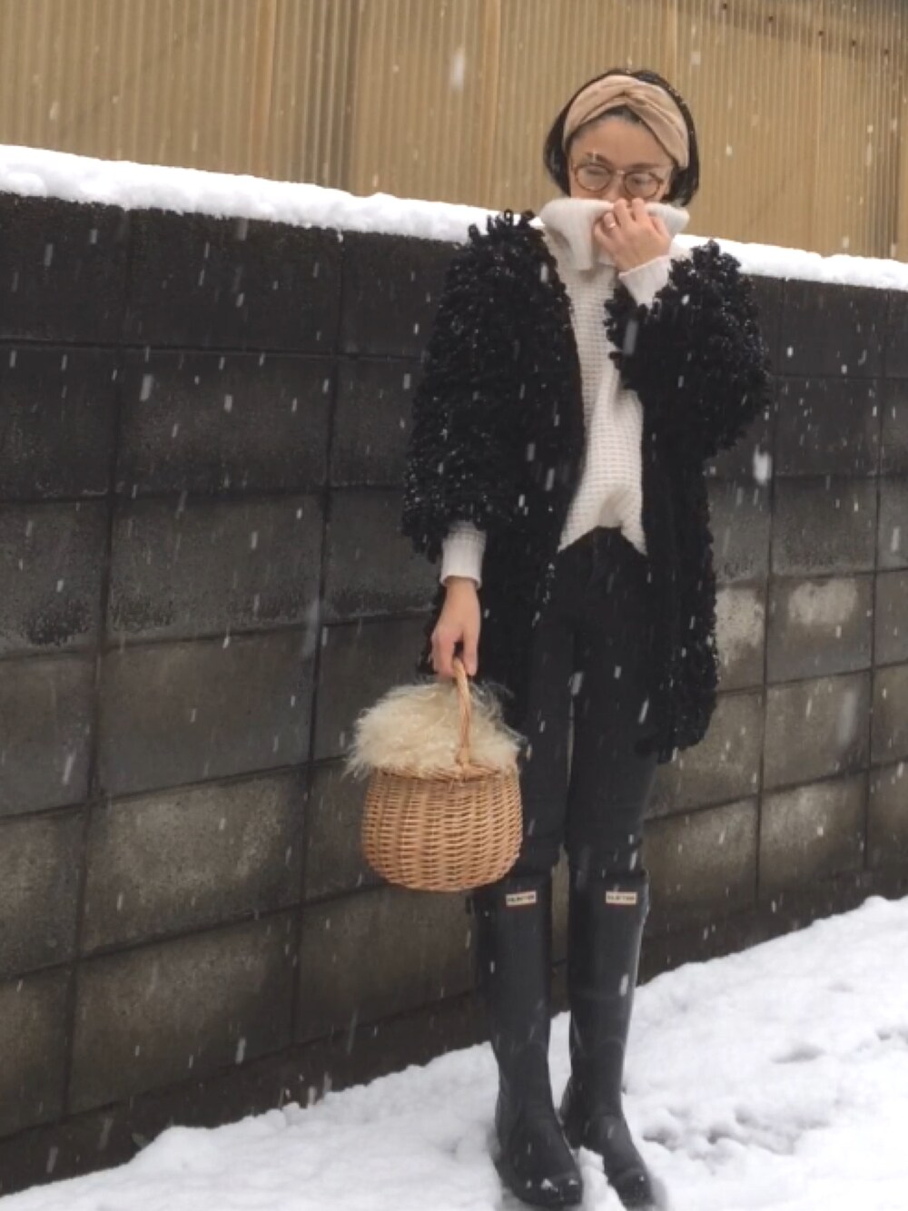 朝起きてびっくり😵 雪が積もってました☃️ ニットにカーディガンでも両方ともボリュームあるから寒くなかったー🙌 いつも見てくださりありがとうございます◡̈⋆*