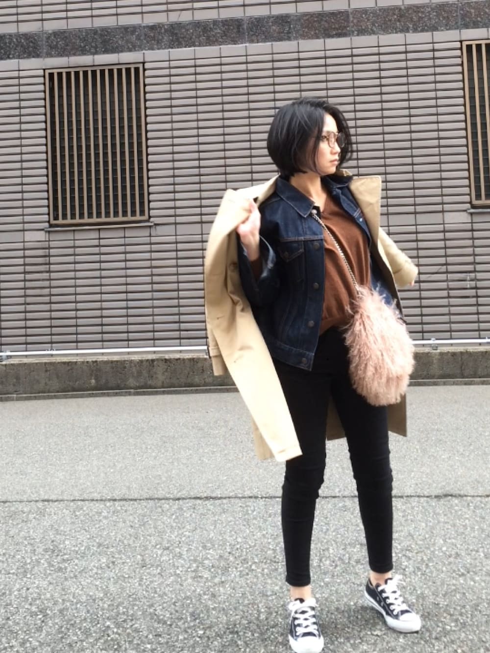 デニムジャケットにトレンチの気分✨ 今日はあまり寒くなかったからちょうどいい格好🙌 いつも見て下さりありがとうございます◡̈⋆*