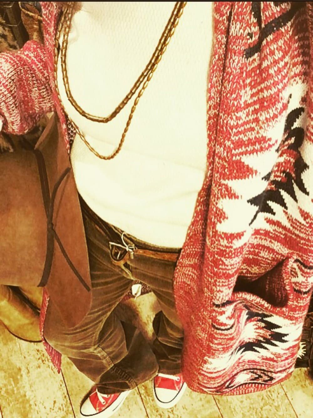 ネイティブニットガウンに合わせたくて 中はシンプルに♡ ミリタリーサーマルと70'sLevi'sコーディロイのパンツ♡