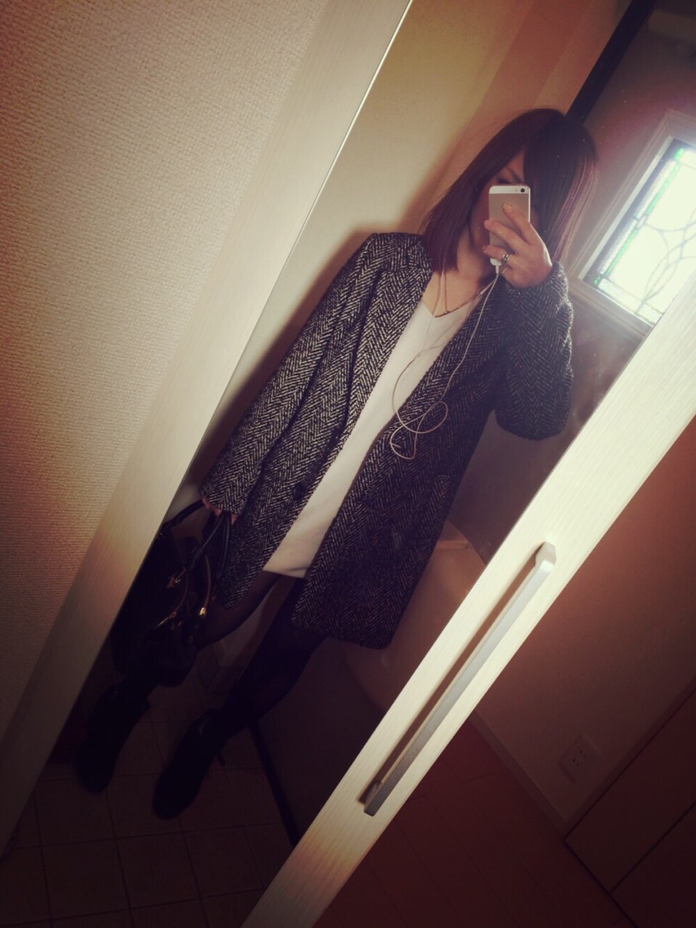 シンプル! 寒いからマフラーした! ワンピースだけど長いから短くしてショーパンちらっと