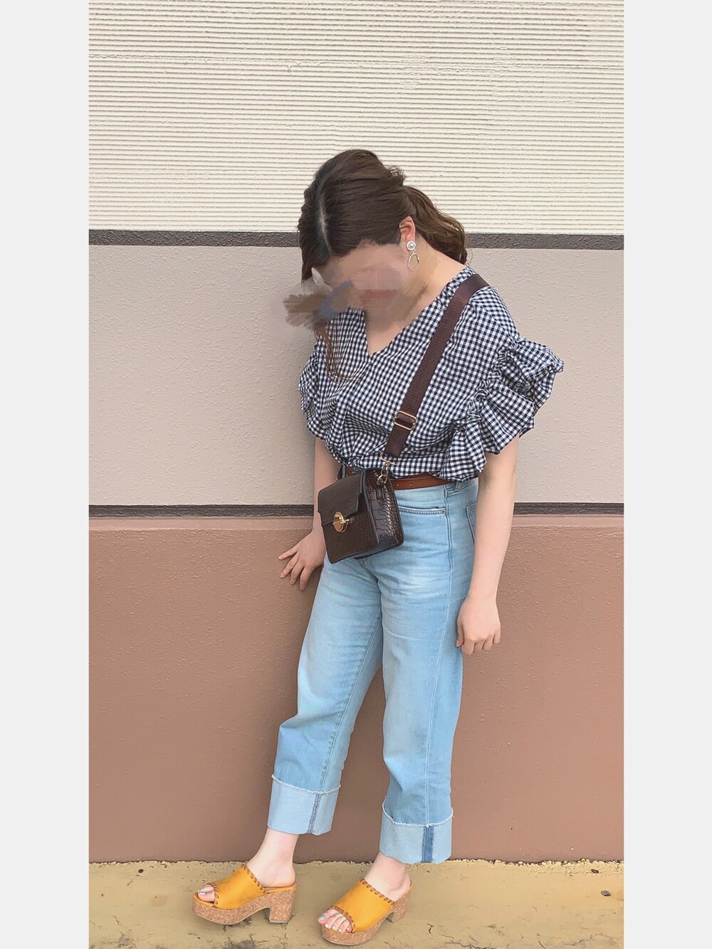 anna.のシャツ/ブラウス「前後2wayボリュームフリルVネックギンガムチェックブラウス」を使ったコーディネート