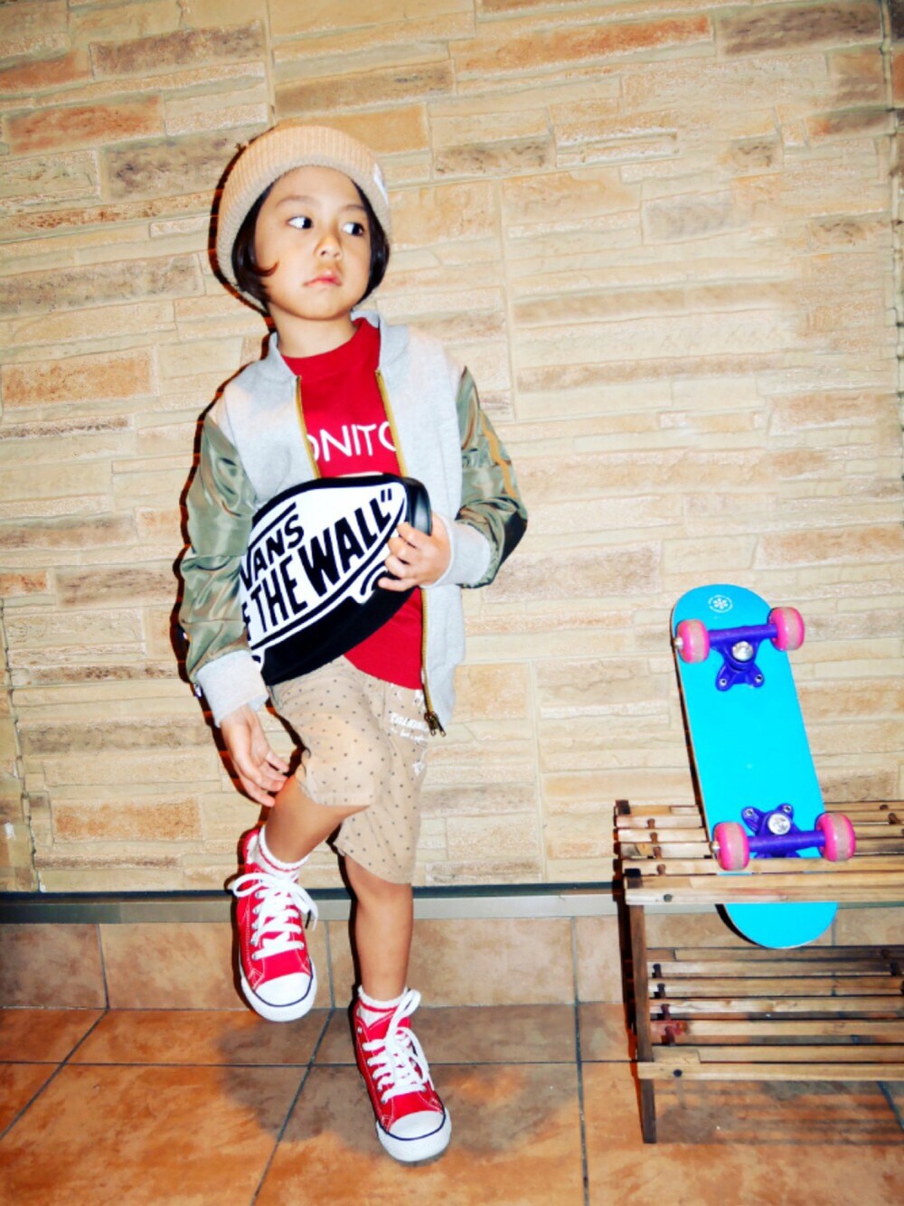 写真撮ってるのにマイペースに足を掻く人( ´ ▽ ` ) VANSクラッチはママと共有♡