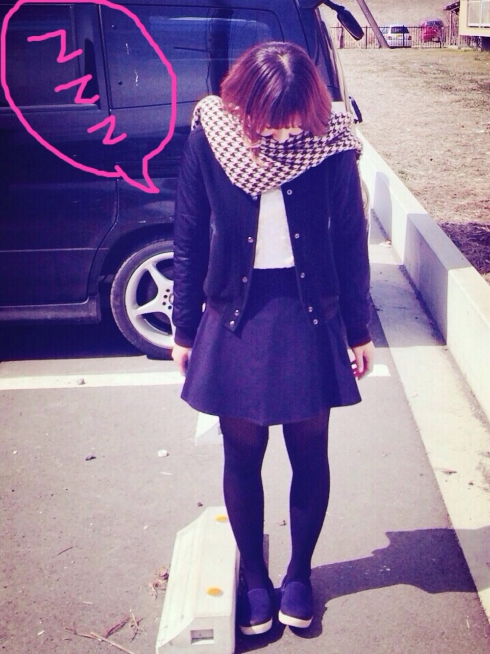 スタジャン:UNIQLO×GVGV 公園でランチ、のスタイル☻ 寒いからストールぐるぐるで!