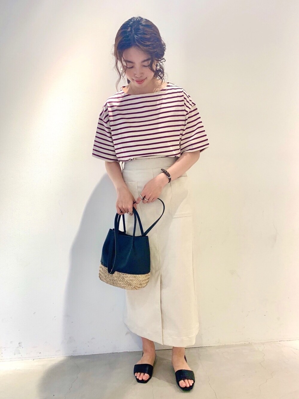 ボーダーのトップスに 白のタイトスカートで合わせて 大人マリンコーデにしてみました⛵️⚓️ いいね&お気に入り登録 ありがとうございます🌿