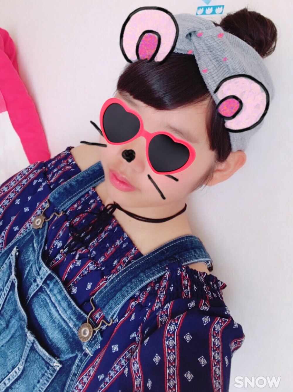 今日のコーデ。 暑かったのでお団子ヘアでニットターバン、ちょっと緩めのオーバーオールにオフショル! 夏っぽいコーデでお出かけ😊