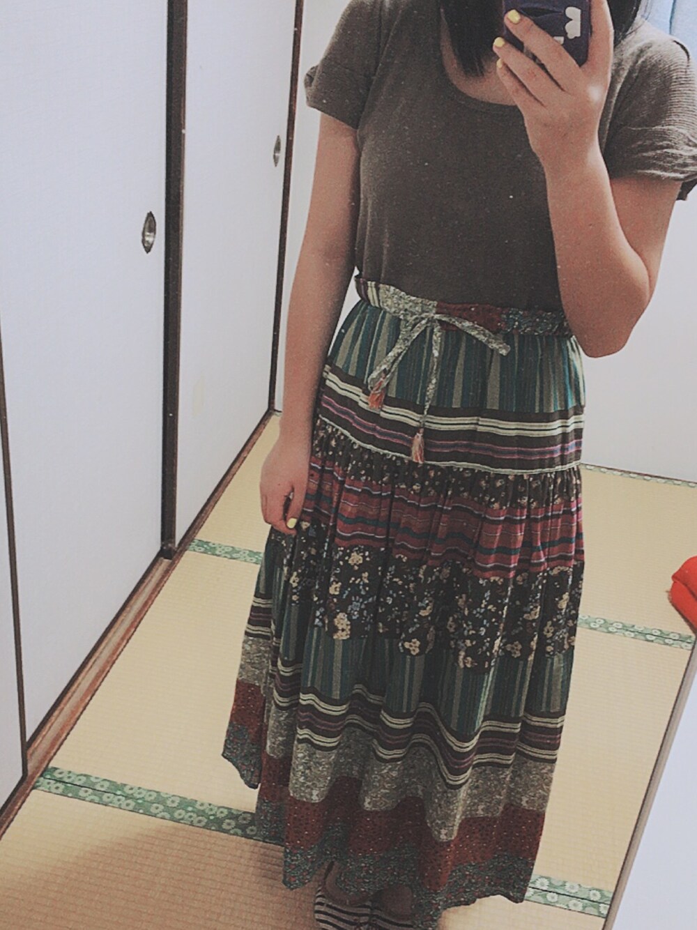 久々投稿 こんばんわ。最近は少し涼し目で 過ごしやすいですね☺️💭 結構前に買ったスカートを デビューさせました