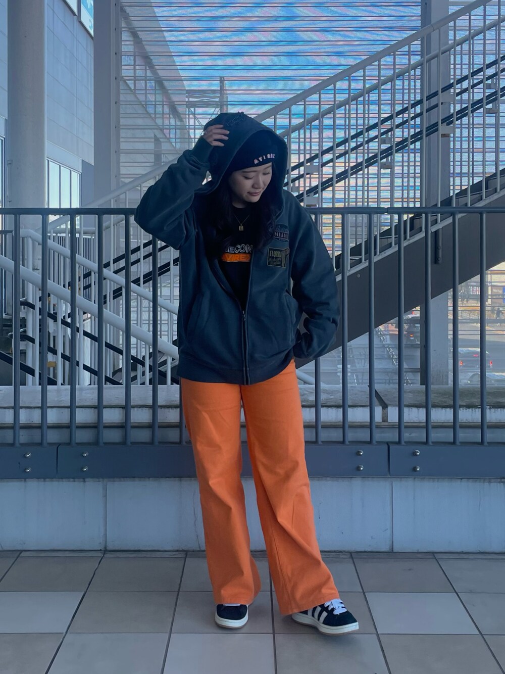 ___a(AVIREX ららぽーと立川立飛店)のパーカー「LONG SLEEVE FADE MIAMI PATCH PARKA / フェード マイアミ パッチ パーカー / AVIREX / アヴィレックス」を使ったコーディネート