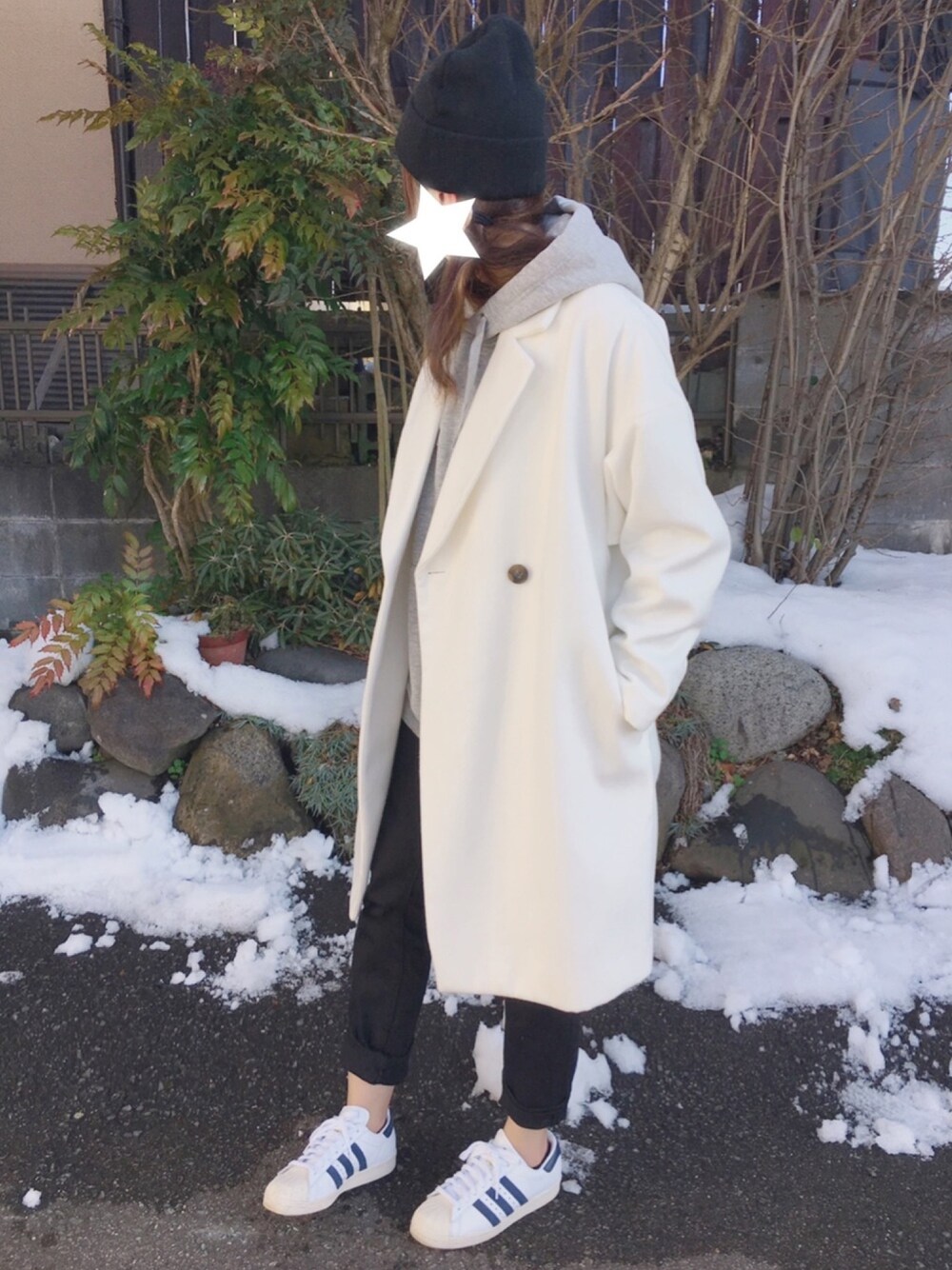 成人の日🎌のコーデです! 長男の受験の合格祈願行って来ました♪ 晴れて良かった〜🔆🔅 そしてこの白のコート汚しました(笑) 今日も見て下さってありがとうございます♡