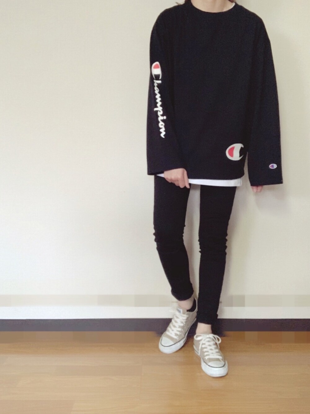 🎃🎃♡happy Halloween♡🎃🎃 10月も終わりですね! 今日は少し暑いぐらいの秋晴れ🔆🔅 今日もプチプラ、カジュアル♪ ChampionのロンTは、ゆったりな袖が可愛い! いつも見て下さりありがとうございます♡