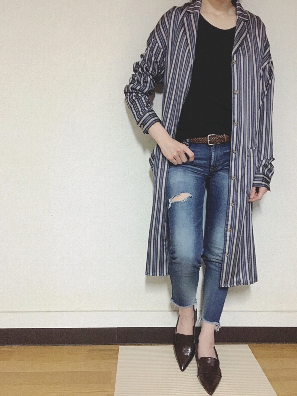 Anna☪︎⋆。˚✩のシャツ/ブラウス「マルチストライプシャツガウン」を使ったコーディネート
