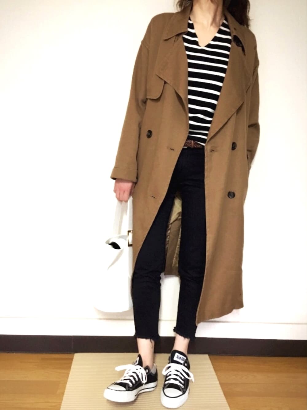 暖かくなったり寒かったり、コーデに困る天気を繰り返してますね〜😓 今日も雨が降っててヒンヤリ☔ Ungridドラフトコーデ2日目‼️ ルーズなトレンチは柔らかくて着やすいです🎵 お気に入りのフレイドヘムは今日はブラックで💡💕 今日も見て下さってありがとうございます😊✨