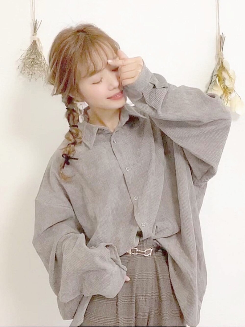 コーデュロイシャツを羽織ではなく トップスとして着てゆるシルエットコーデ♫ まだ流行ってるかわからないけど、 気分でハードポーズ。笑