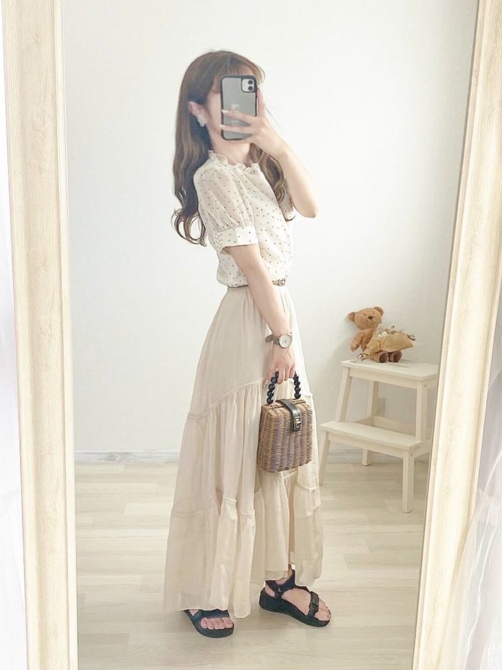 フェミニンガーリー コーデ☺︎♡ こーゆーコーデ大好き🐰🌷 Instagram:@anna__325