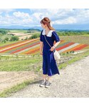 大人ガーリーに着れるネイビーロングワンピース お気に入りです🐰🌷♡ Instagram:@anna__325