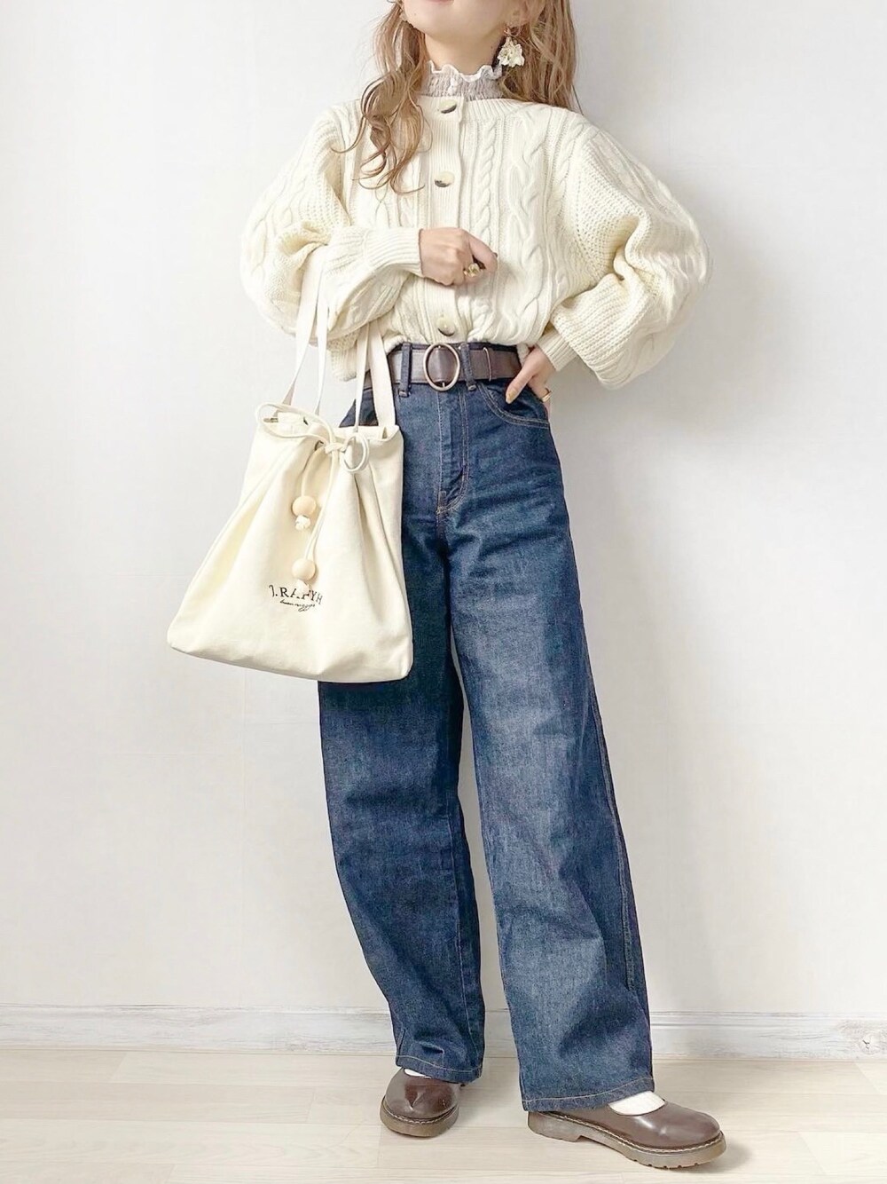 ケーブルニットカーディガンコーデ🐰🌷♡ Instagram:@anna__325