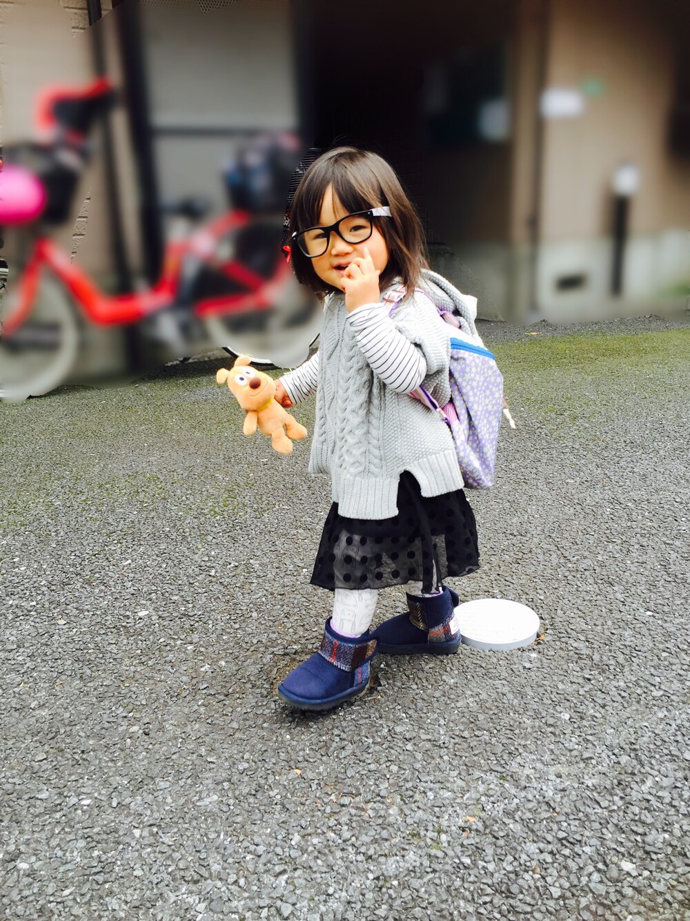 最近リュックを見つけると背負いたがります。