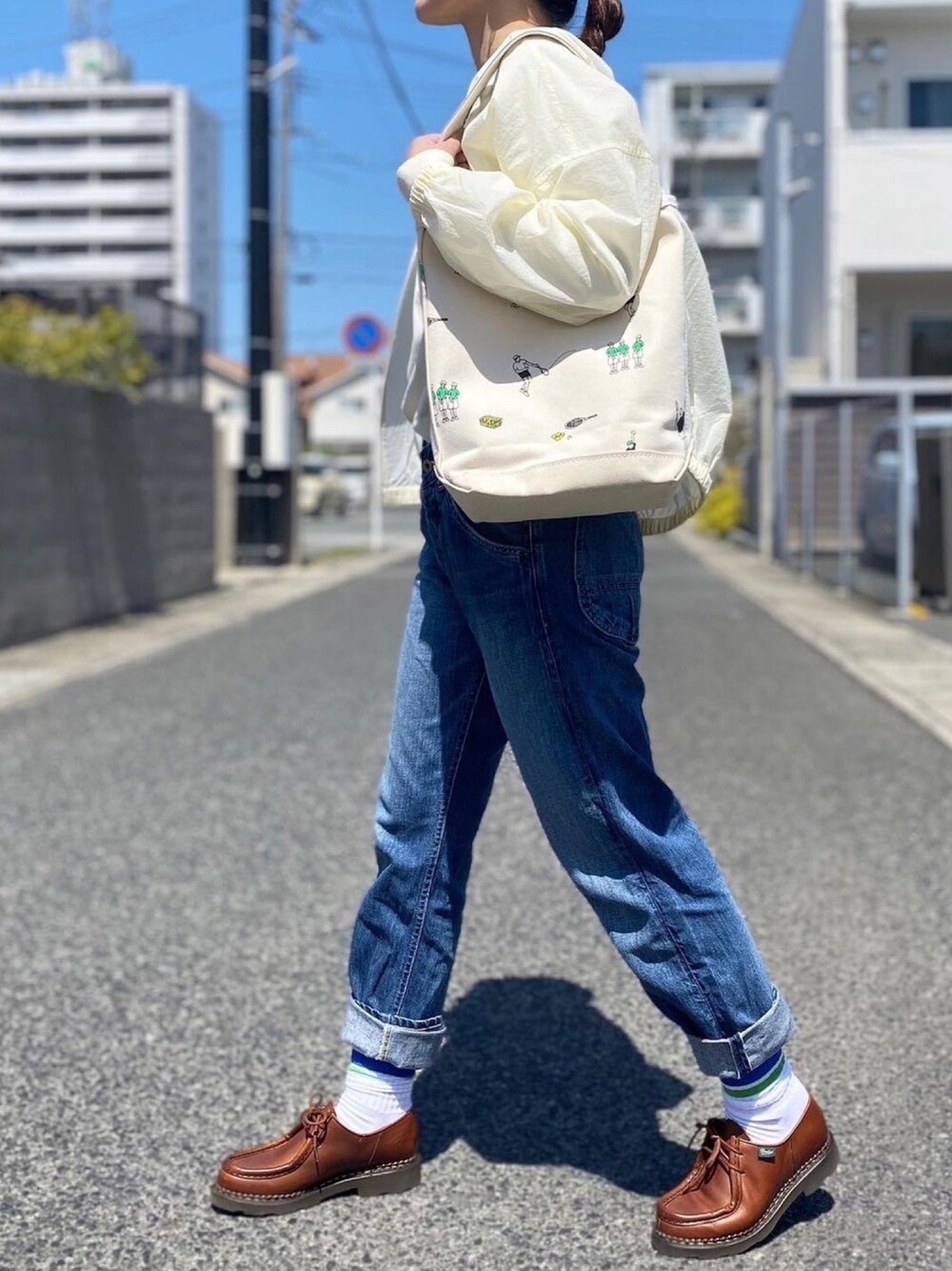 TEMBEAのバケットトート◎縦長なので肩がけして人とすれ違っても人とぶつかる事がなく、デザインも可愛く、優秀なアイテム‼︎ファミマソックスや、ユニクロのブルゾン等、プチプラアイテムも、良い仕事をしてくれてます◎ Instagram @ann_a721