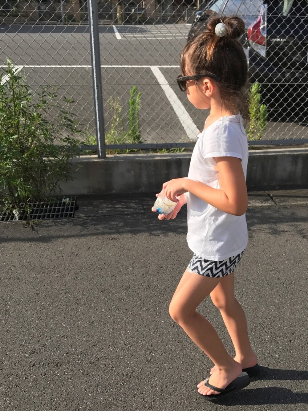 お稽古帰り 15時以降は日差しが強く、パパのレイバンを借りて瞳をガード カルピスゼリー?を買ってご機嫌♫ ゼリーを必死に吸い込んでる写真、是非ご覧ください♡小窓にあります。 いつも見てくださり、ありがとうございます😊