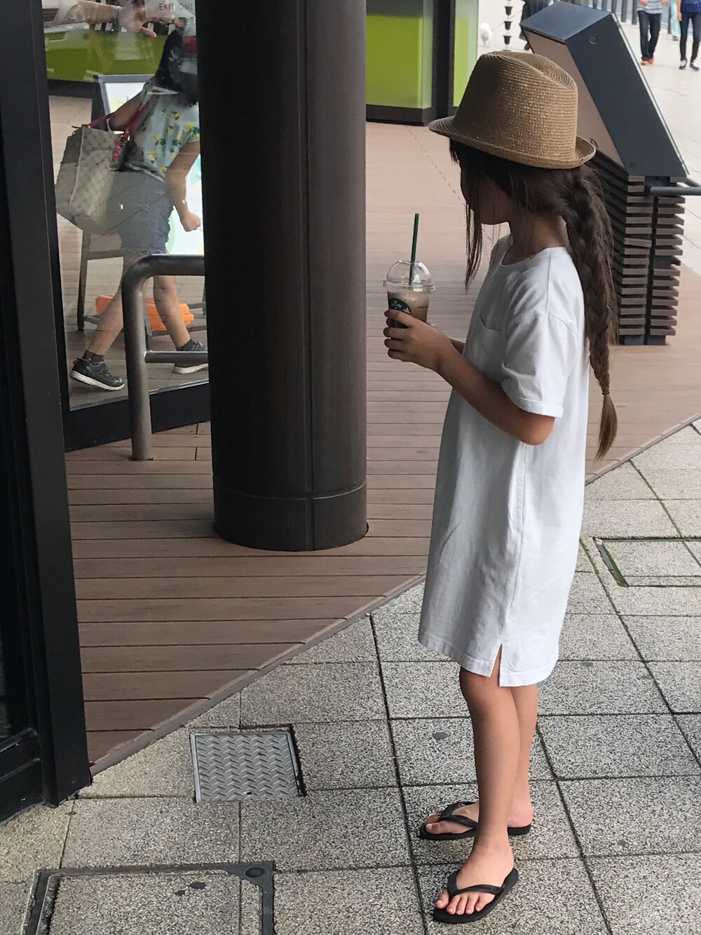 杏奈mamaのワンピース「【キッズ】ムジドヅメカットワンピース半袖/749688」を使ったコーディネート
