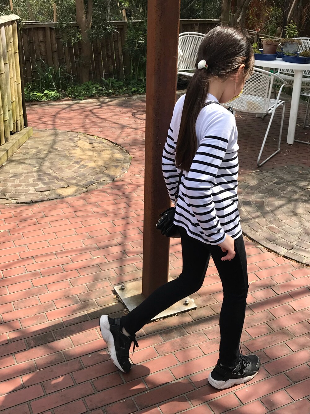晴天♡ 唐揚げ食べに行きました。 待ち遠しくてウロウロ… ロンT、使える♡