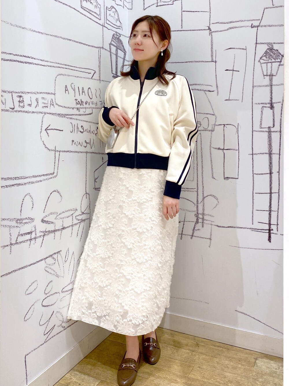 トレンドのトラックジャケットをフェミニンに着こなして〜◎