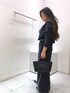 シンプルなワンピースですが、ベロアなので、高見えするワンピースです。 着心地もいいし、サイズ感も少しゆったりしてるので、動きやすさ抜群です。 アクセサリーを使って、少しオシャレ感をプラス。バッグと靴は黒で統一しました。