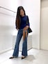 フレアデニムで足長効果、トップスは防花粉になっているので、この時期ピッタリです。 デニムでカジュアルすぎず、ストールやシアーのヒールで少しキレイめの大人コーデにしてみました。
