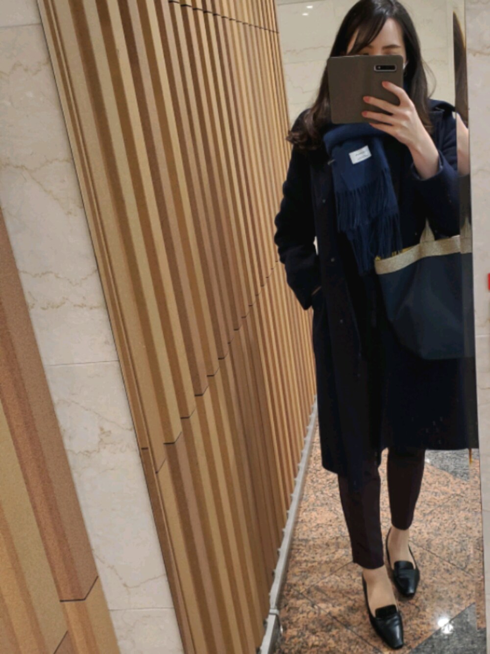 ほとんど見えてないけど、ストロベリーフィールズのジャケットはストレッチが効いていてお気に入り♡ GUのパンツはブラウンです