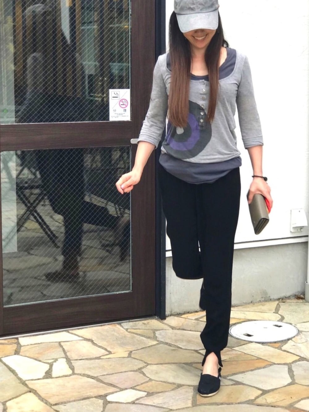 今日は大親友と打合せ😊 ラフ過ぎるstyle💧 イージーパンツは万能👖 ずいぶん昔のtheory限定Tシャツに インTシャツ👕 夏に向けて絞らないと🕶