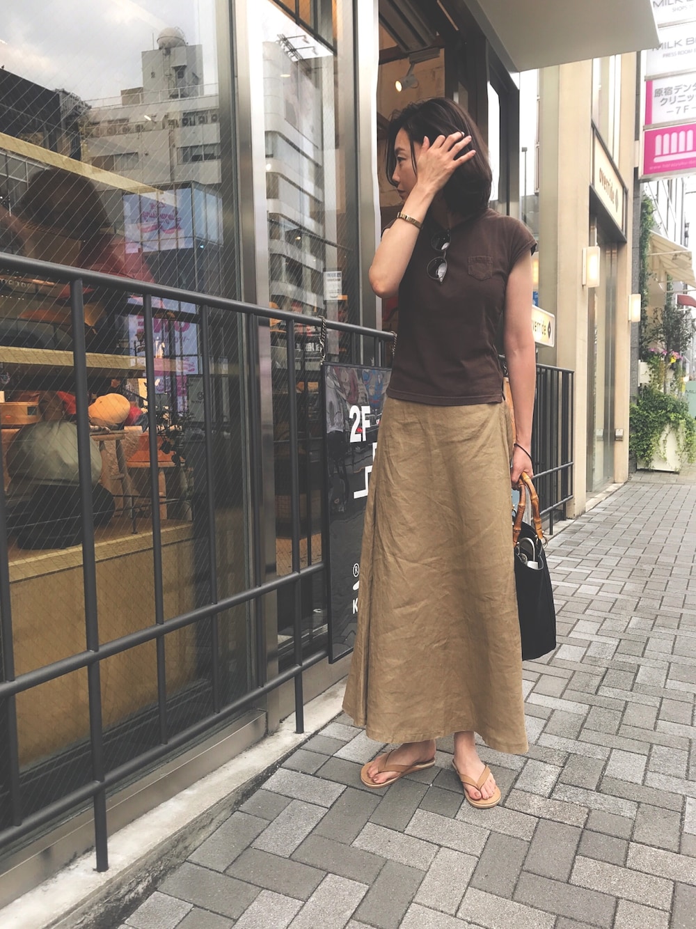 Tシャツはむかーしスタバ☘で買ったコーヒー染め👕 無印のリネンのスカートはSALEでゲット❗️裏地なしで着やすい☺️