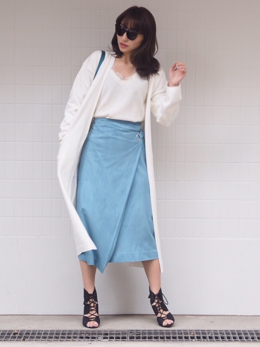 タイトスカートにロングカーデを羽織って、Iラインコーデにしました。