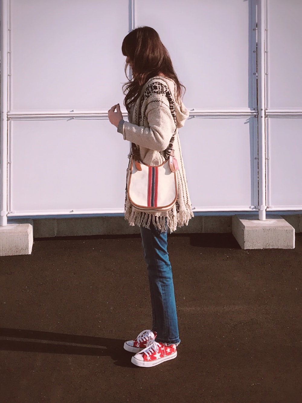 暴風もおさまって気持ちの良いお天気です😊 ノーブランドの星柄スニーカーが履きたかったのでコーデしてみました❤️