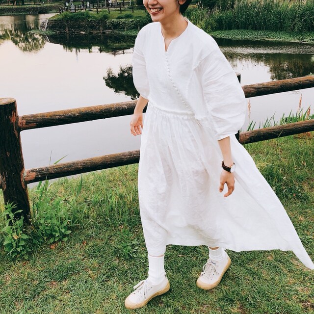 リネンとかコットンとかゆるりとして柔らかい生地が好き。 可愛らしいのも着れば、カジュアルも着ます。