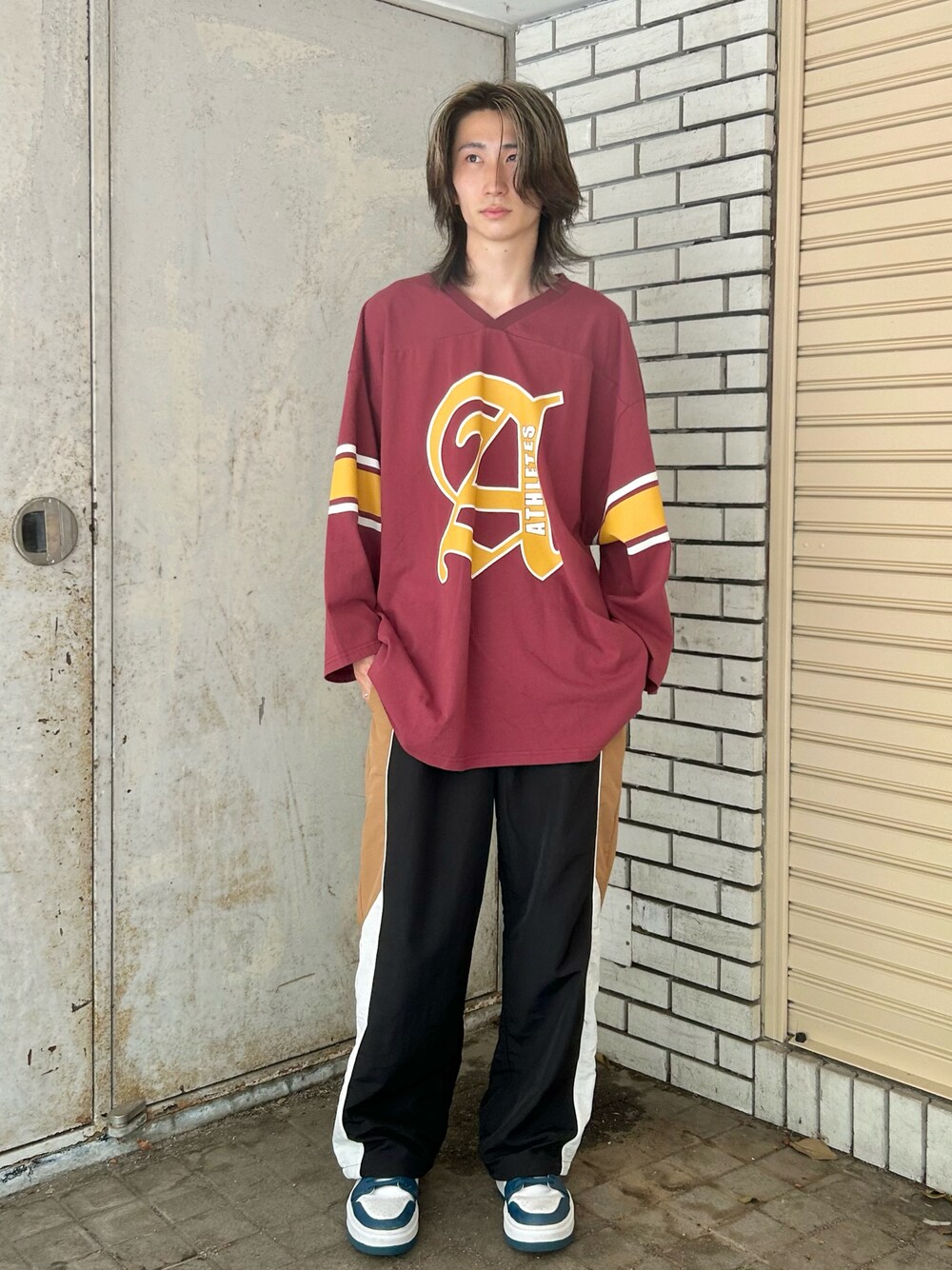 オーバーサイズのTシャツとトラックパンツはユニセックスで着用でき、メンズの方でも楽しんで頂けます◎