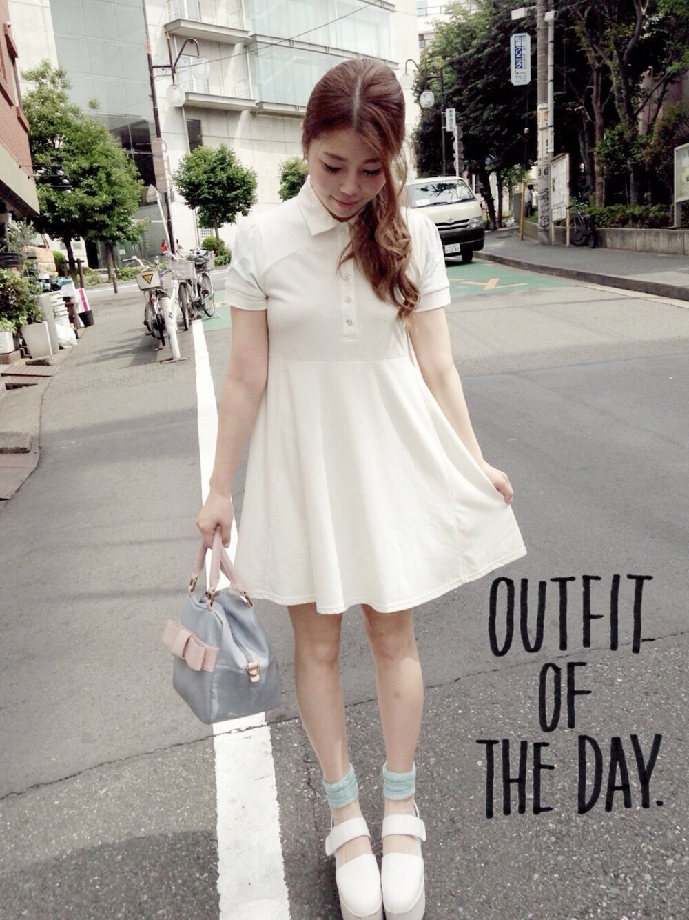 おニューのオニツカタイガーの襟付きワンピ♡ ボタンがキラキラ可愛い♡