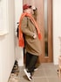 メンズライクコーデ✧*。 赤のマフラーとキャップをアクセントに。 赤×緑の組み合わせが好きです"(∩>ω<∩)"