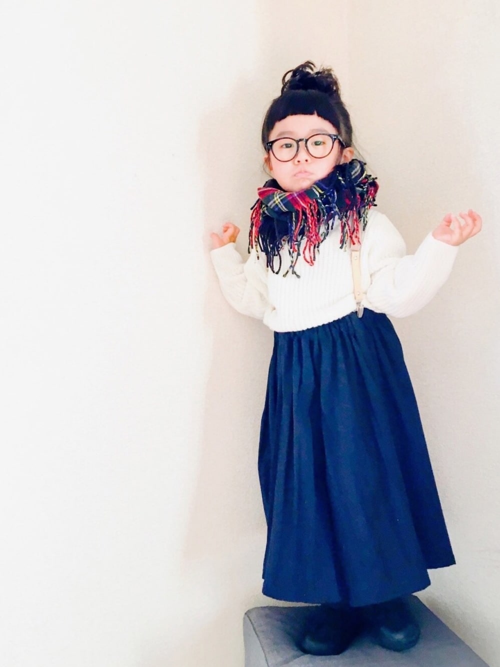 いつも見て頂いてありがとうございます♡ GUの白ニット着回し💕 去年ズルズルだったチャオパのスカーチョ、 今年やっとリアルで履けるかなぁ。 子供のロング丈ってほんと可愛いですよね❤️ オシャレさんたちがしてたモンミミさんのサスペ、 私は違うお店で買ったけど、これだけで存在感抜群です✨