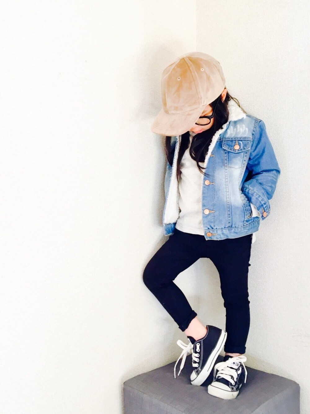 いつも見て頂いてありがとうございます♡ デニムボアジャケ × 黒スキニーのシンプルスタイル。 ひねりも何もなし笑😅
