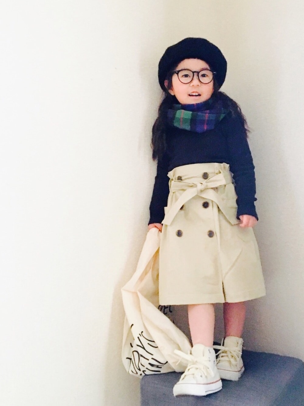 いつも見て頂いてありがとうございます♡ GUの新作トレンチスカート(≧∀≦)♡ ベージュとカーキ、選び切れずに色チ買いしてしまいました! 形とか可愛すぎる〜〜💕 これ大人物も出ないかな?? 黒タートルとベレーを合わせてパリジェンヌ気取りです♪(´ε` ) 身長98cm トップス: Mサイズ スカート: 110サイズ
