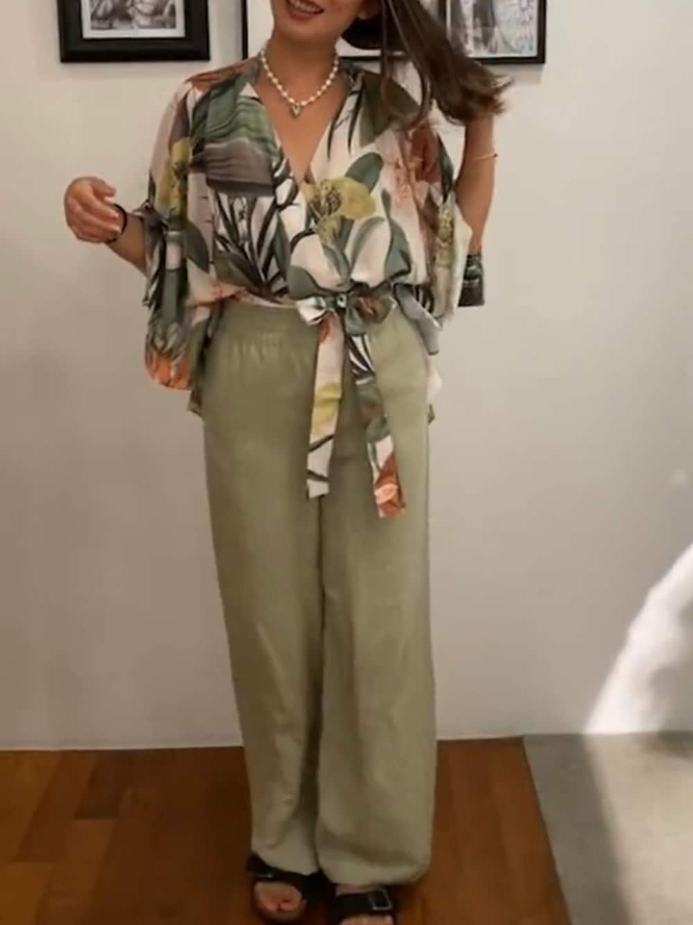 リゾートガウン🏝 前を閉めてパンツと合わせると、カシュクールのお洋服のようにも着て頂けます✨